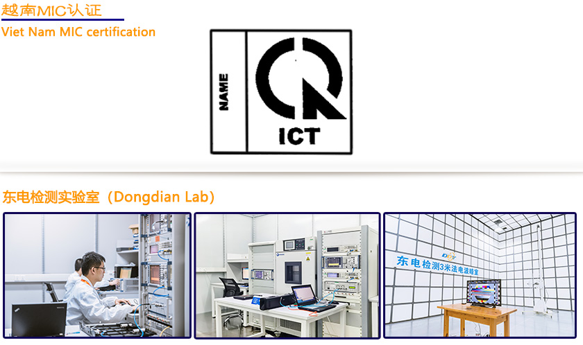越南MIC認證是越南資訊通訊部(ministry of Information and Communications of the Socialist Republic of Vietnam,MIC),針對資訊產品類的電磁干擾與通訊產品,實施強制相關的TCVN/TCN標準規范。電磁干擾部份可由當地供應商以自我宣告的方式提出申請,最后經由資訊部 認可,產品即可于越南市場上銷售。